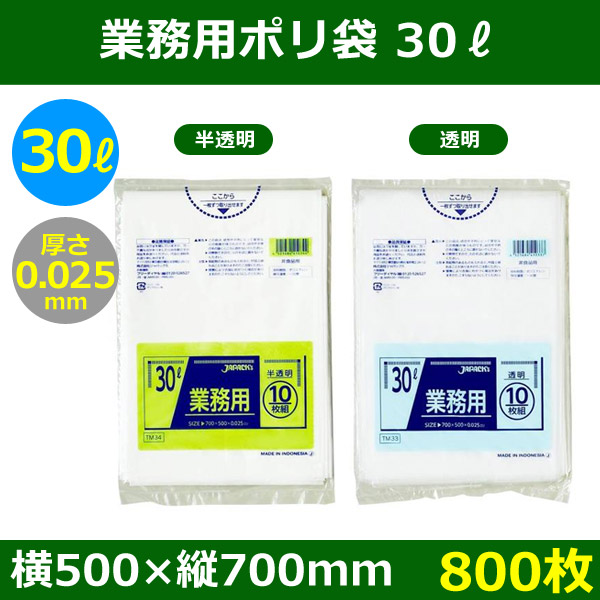 送料無料・業務用ポリ袋「スタンダード(LLDPE+META) 30リットルタイプ 透明/半透明」500×700mm 厚み0.025mm「800枚」 [4150-tm33--800]