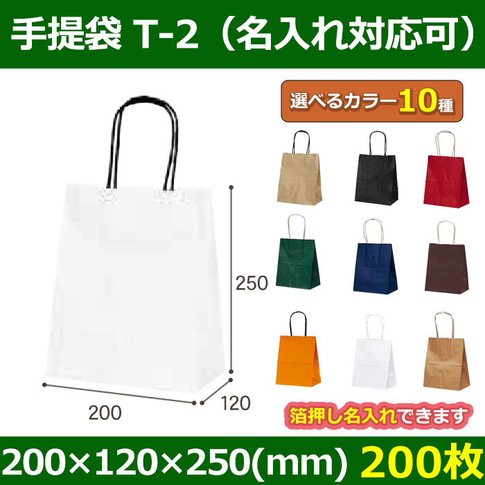 送料無料・自動紐手提紙袋 T-2 幅200×マチ120×丈250mm 「200枚・1000枚・2000枚」全10色 [2220-t2]