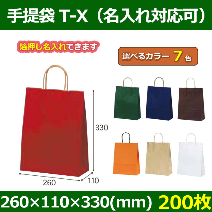 送料無料・自動紐手提紙袋 T-X 幅260×マチ110×丈330mm 「200枚・1000枚・2000枚」全7色 [2220-t-x]