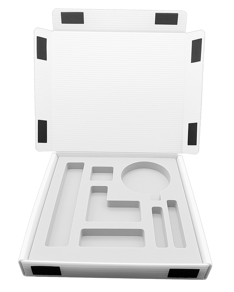 ポリプロピレン製の中空構造板(プラダン)を使用しており、一般的なダンボールと比べて