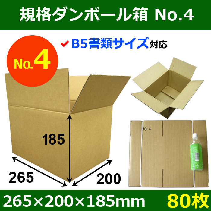 規格ダンボール箱No.4「80枚」265×200×185mm B5サイズ対応 [1010-kikaku4--80]
