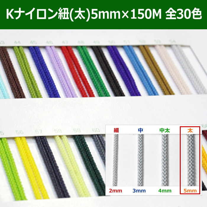 送料無料・Kナイロン八ッ打紐(太) 5mm×150M 「全30色」