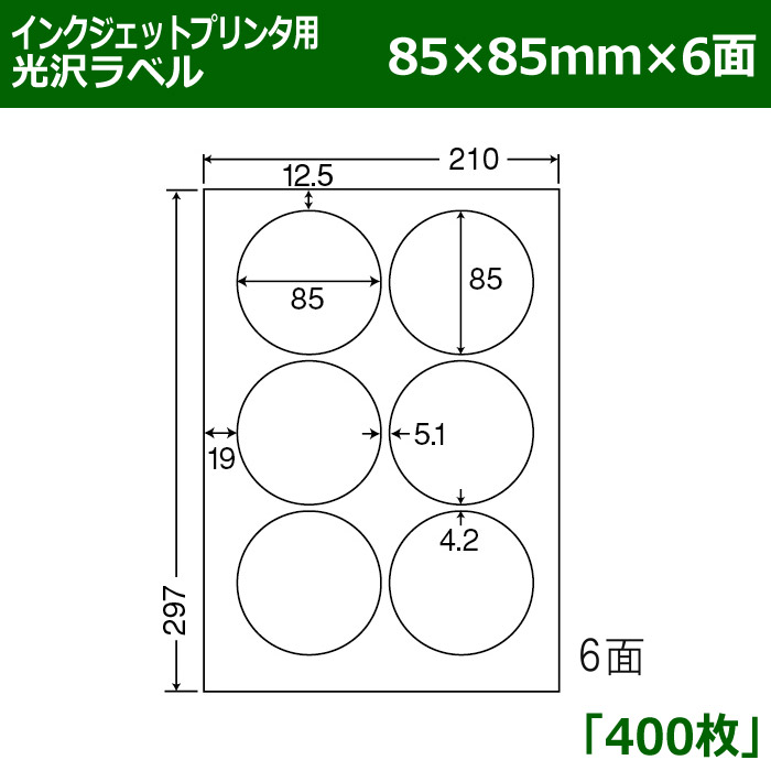 送料無料・カラーインクジェットプリンタ用光沢ラベル 85mm×85mm×6面 「400シート」 [2130-scj5--400]
