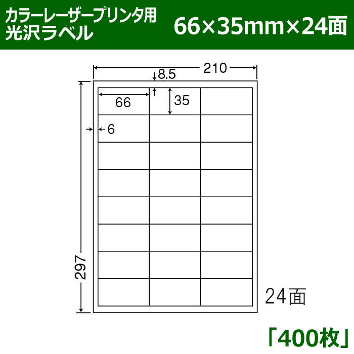 送料無料・カラーレーザープリンタ用光沢ラベル 66mm×35mm×24面 「400シート」