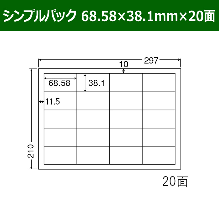 送料無料・シンプルパック 68.58mm×38.1mm×20面 「500シート」