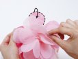 リボンを結んだあと、花びらと花びらの間に空間を作るように手前へ引き出すとより美しく仕上がります。