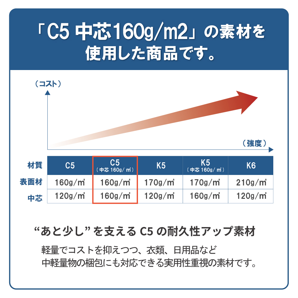 材 質 | C5/AF中芯160g(紙厚5mm) ダンボール材質詳細 |