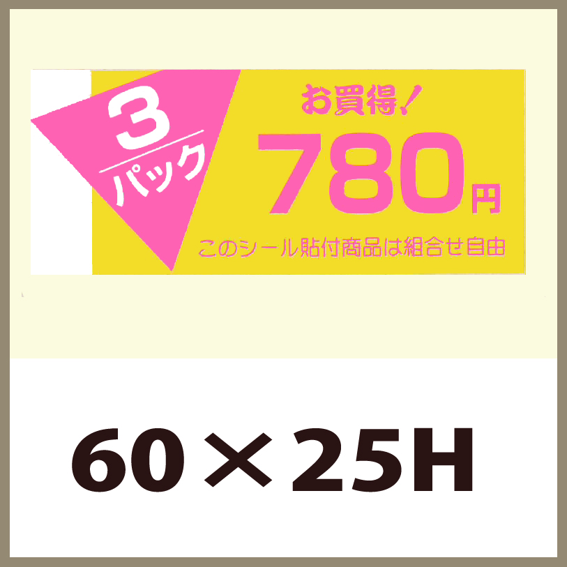送料無料・販促シール「3P 780円」60x25mm「1冊500枚」 [2040-p-792]