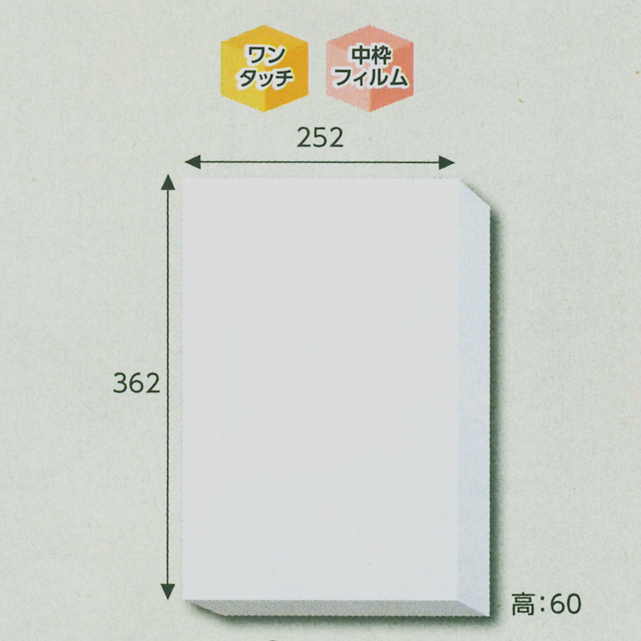 | 内寸法(mm) | 縦362×横252×高さ60 |