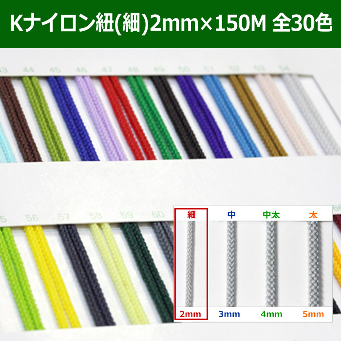 送料無料・Kナイロン八ッ打紐(細) 2mm×150M 「全30色」 [4030-knairons]