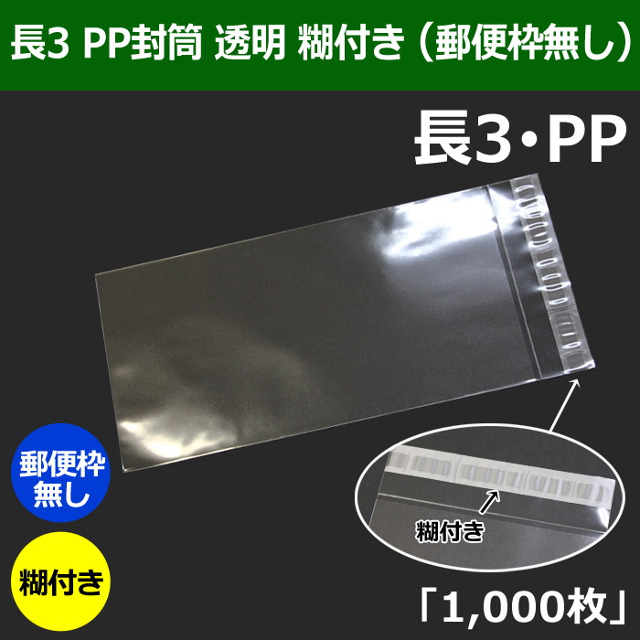 送料無料・長3 PP封筒 透明 120×235+30mm「1000枚」透明