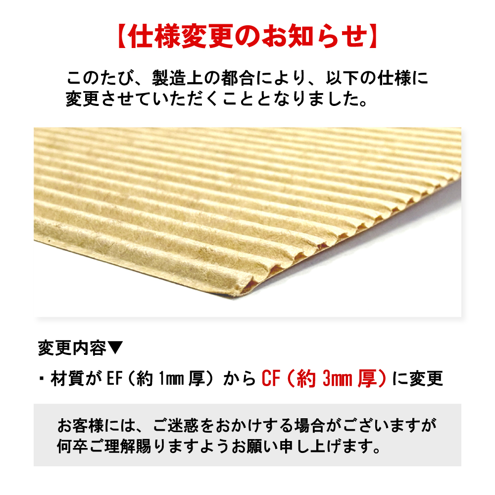 ※仕様変更のお知らせこのたび、製造上の都合により、以下の仕様に変更させていただくこととなりました。■変更内容 ・材質がEF(約1mm厚)からCF(約3mm厚)に変更 お客様にはご迷惑をおかけする場合がございますが、 何卒ご理解賜りますようお願い申し上げます。 |