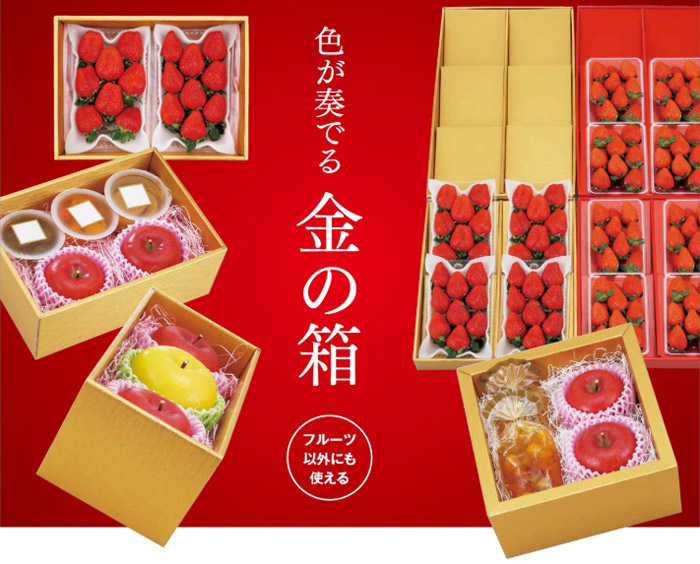 フルーツ以外にもお使いいただける金色の箱を各種ご用意いたしました。